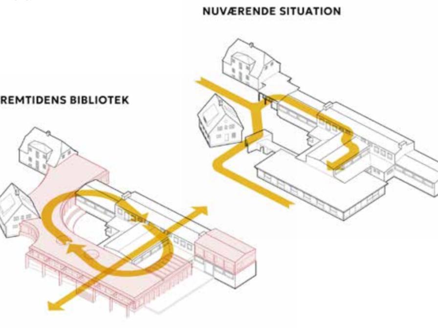 De viste tegninger og visualiseringer er uddrag fra arkitektfirmaet Studio Heimas prospekt for Fremtidens bibliotek.