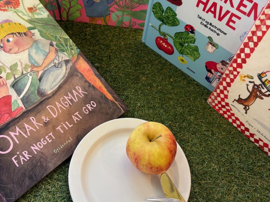 Vi læser højt og pirrer nysgerrighed og madglæde, når vi snager med alle sanser. Smager et æble for eksempel ens, når man smager det med og uden lugtesansen? Og kan man mærke med fingrene om noget smager godt?